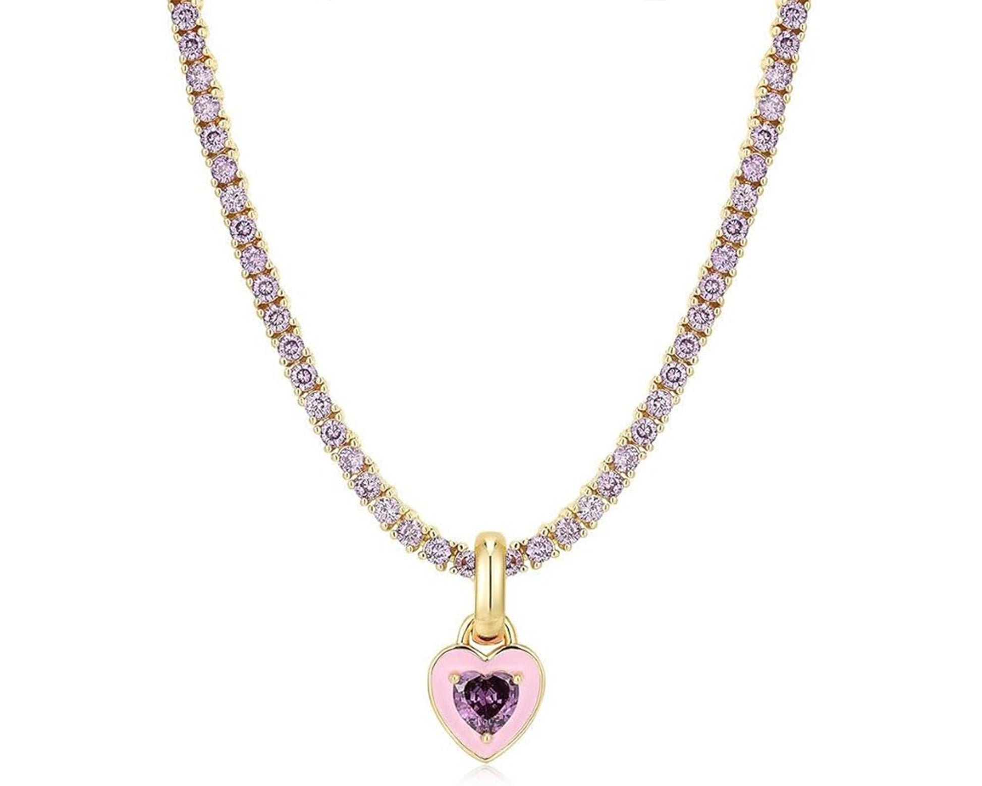 Pink Diamond Heart Choker With Tennis Chain