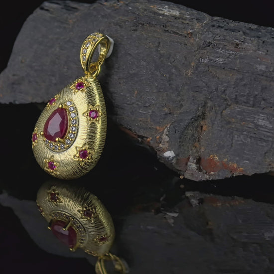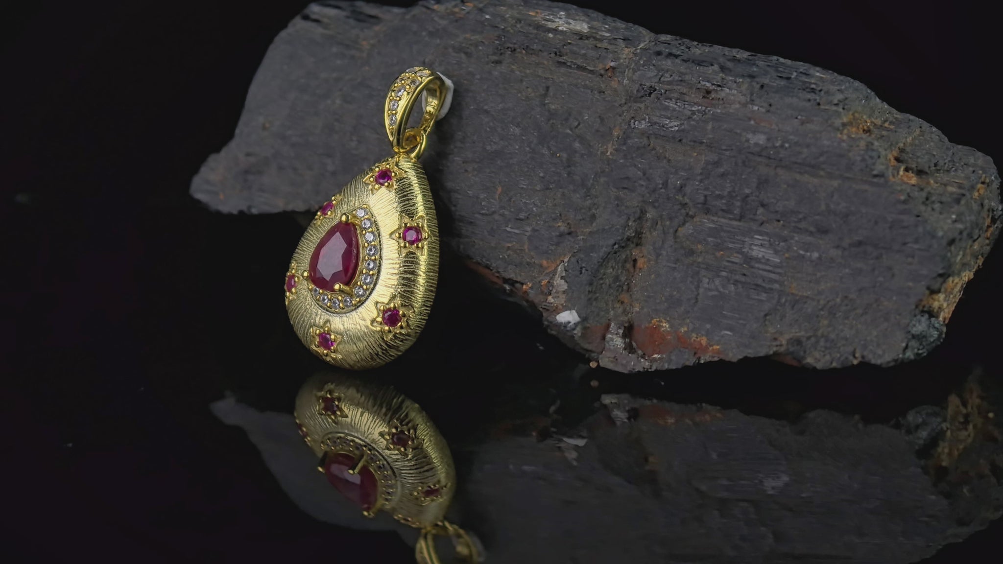 This Yesalna pendant captures vintage beauty with its pear-cut ruby centerpiece and gold-plated sterling silver design. Inspired by timeless elegance, it’s the perfect gift for anniversaries, milestones, or a meaningful personal keepsake. A jewelry piece that combines luxury with heritage style.