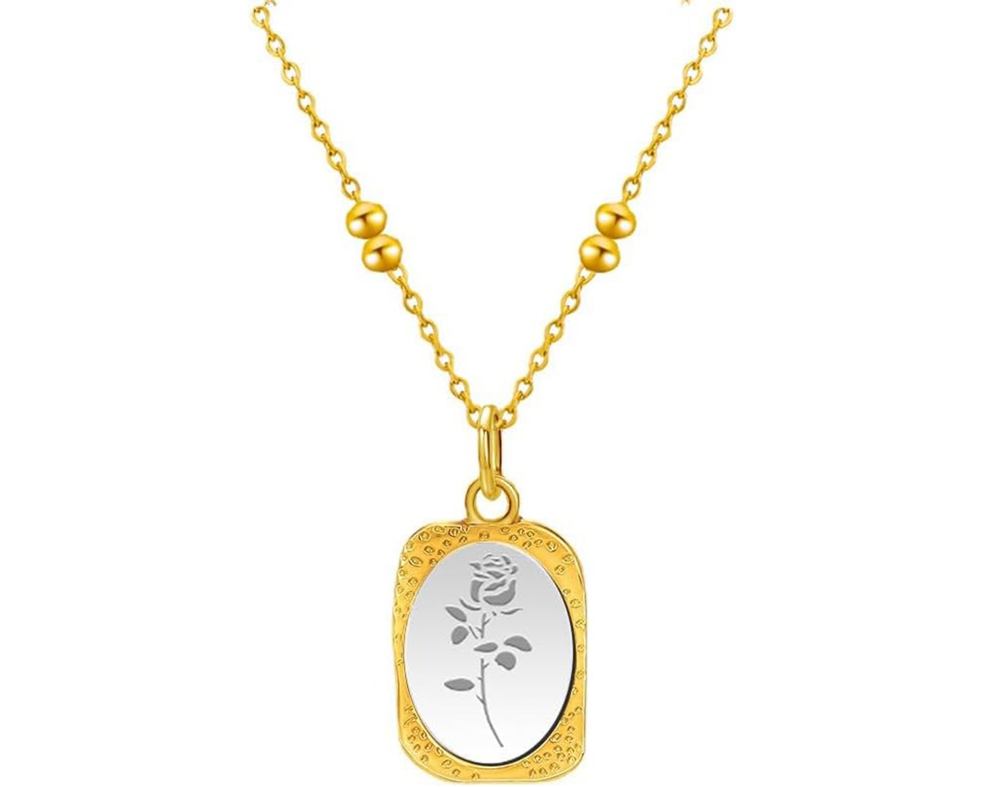 Gold & Silver Rose Pattern Pendant Necklace – 18K Plated Tarnish-Free Jewelry